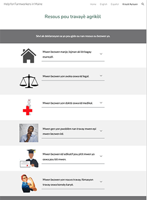 Translated website content for a website that is dedicated to helping migrant farm workers in Maine. We have many Haitians who come to Maine during the farming season, this is an amazing resource for them to have so much beneficial information in one place.